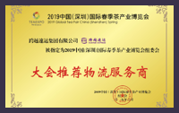 被评为2019年中国茶博会“大会推荐物流服务商”