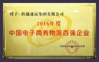 获得2016年度中国物流业大奖“中国品牌价值百强物流企业”